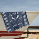 Customise your lake house with this cute personalised beach towel featuring your family name or house name and year established in white lettering accented with a pair of oars or canoe paddles on a navy blue background.