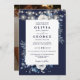 This elegant navy blue rustic string lights floral wedding invitation can be personalised with your information in modern typography and a special photo on the reverse. Designed by Thisisnotme©