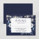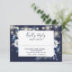 Navy Blue Rustic String Lights Floral Wedding RSVP Card
