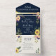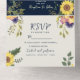Navy Blue Rustic Sunflower Wedding All In One Invitation
