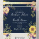 Embrace rustic elegance and boho charm with our navy blue wedding invitation, designed to capture the beauty of your love story. This stunning all-in-one invitation features delicate watercolor flowers, vibrant sunflowers, and elegant hand-lettered script, creating a perfect blend of warmth and sophistication. The rich navy blue backdrop adds a touch of timeless elegance, while the botanical-inspired design brings the beauty of nature to life.