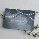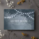 Navy Blue Rustic Tree String Lights Wedding Guest Book