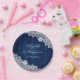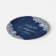 Navy Blue Rustic Wood Lace String Lights Wedding Paper Plate