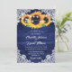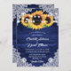 Navy Blue Rustic Wood Lace Sunflower Wedding Invitation