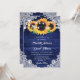 Elegant navy blue rustic sunflower wedding invitation ideal for a navy blue rustic country, backyard, garden, or barn wedding party inspired by sunflower flowers. Matching items available to complement this navy blue rustic wedding invitation featuring sunflowers on a rustic wood background adorned with white floral lace and string lights.