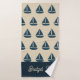 navy blue sailboat & Monogram Beige Coastal home bath towel set