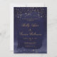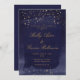 Resplendent in a navy blue sapphire with gold calligraphy against a watercolor wash, ignited by splashes of shimmering gold ink.