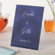 Navy blue background, the blue colour is uneven. White scirpt text: Cards and gifts. Thank you!