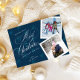 Navy Blue Script Collage Merry Christmas Photo Holiday Card