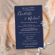 Elegant navy blue signature script wedding weekend program featuring signature style names. Personalise with your wedding weekend details set in chic white lettering. Designed by Thisisnotme©