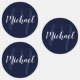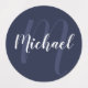 feature personalised name in white modern script font style and monogram in light navy blue modern script font style as background