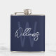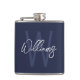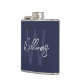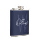 Navy Blue Script Personalised Monogram and Name Hip Flask