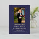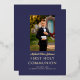 Personalized Navy Blue Script Photo Boy First Holy Communion Foil Invitation.