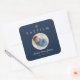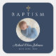 Navy Blue Script Religious Cross Boy Baptism Photo Square Sticker