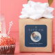 Personalized Navy Blue Script Religious Cross Boy Baptism Photo Square Sticker.