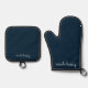 Navy Blue Script | Stylish Monogram Modern Oven Mitt & Pot Holder Set
