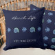 Navy Blue Sea Shells Fish Family Name Beach House Cushion