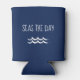 Navy Blue Seas the Day Waves Nautical Can Cooler