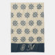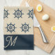 navy blue ship wheel & Monogram Beige Coastal home Tea Towel