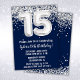 Navy blue and silver 15th birthday party invitation 15 birthday party invitation for a boy or girl with modern script writing and fun foil balloons.