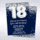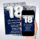 Navy Blue Silver 18th Birthday Party invitation 18 birthday invitation for a boy or girl with modern script writing and fun foil balloons.