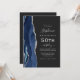 The left-hand edge of this elegant modern 50th birthday party invitation features a navy blue watercolor agate border trimmed with silver faux glitter. The customisable text combines silver grey handwriting, copperplate and italic fonts on a slate black background. Add RSVP instructions on the back of the card, along with a QR code guests can scan to respond online.