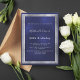 A trendy, modern 50th (or any age) birthday party invitation card for men, guys, male. A navy blue background. The blue colour is uneven. With a faux silver frame. Personalise and add your name and party details.