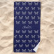Navy blue silver butterflies pattern name script beach towel