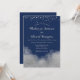 An elegant navy blue and silver wedding invitation featuring silver confetti dust at the top and blingy silver accent at the bottom.