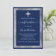 Navy blue silver cross Confirmation Invitation