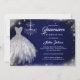 Navy Blue Silver Diamond Lace Gown Quinceanera Invitation