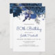 Navy Blue Silver Floral 80th Birthday Party Invitation