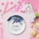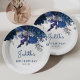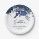 Navy Blue Silver Floral 80th Birthday Party Paper Plate