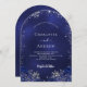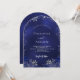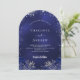 A navy blue background, decorated with faux silver glitter, sparkles and blue florals. The blue colour is uneven. Personalise and add your names and details.