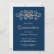 Navy Blue Silver Flourish Diamond Quinceanera Invitation