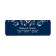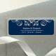 Elegant return address labels featuring a beautiful flourish design against a navy blue background.