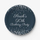 Navy Blue Silver Glitter 90th Birthday Party Paper Plate