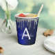 Navy Blue Silver Glitter and Sparkle Monogram Paper Cups