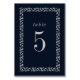 Navy Blue Silver Glitter Botanical Frame Table Number