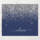 Navy Blue Silver Glitter Girly Monogram Name Liquor Bottle Label