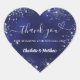 Navy blue silver glitter heart thank you wedding sticker