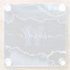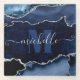 Navy Blue & Silver Glitter Marble Agate Monogram Glass Coaster