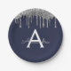 Navy Blue Silver Glitter Monogram Birthday Paper Plate
