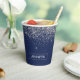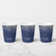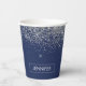Navy Blue and Silver Faux Glitter and Sparkle Elegant Monogram Birthday, Wedding, Bridal Shower or Bachelorette Party Cup. This Birthday Party Cup can be customised to include your first name. Please contact the designer for customised matching items.