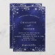 A navy blue background, decorated with faux silver glitter, sparkles. The blue colour is uneven. Personalise and add your names and details.