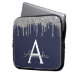 Navy Blue Silver Glitter Sparkle Monogram Laptop Sleeve