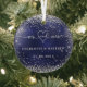 Navy blue silver glitter sparkles newly weds glass tree decoration