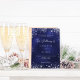 A navy blue background, decorated with faux silver glitter dust. The blue colour is uneven. Personalise and add your names and details.