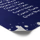 A classic navy blue background, the blue colour is uneven. Decorated with faux silver glitter dust. Personalise and add the name of the bride and groom, add your guests names.