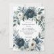 Navy Blue Silver Ivory Floral Wedding Celebration Invitation